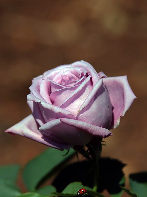 Thanks to my friend Nina for spotting this, the only purple rose in the entire garden. That lady bug crawled into the frame at exactly the right moment.