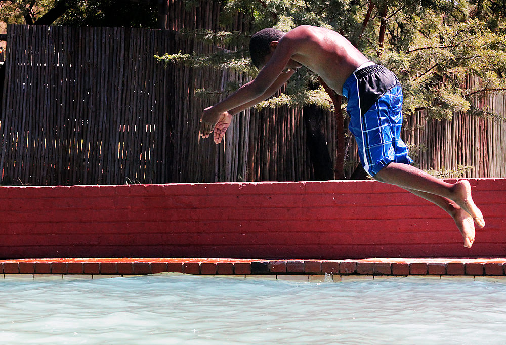 One of Lebo’s campers dives into the pool at Camp Sizanani.