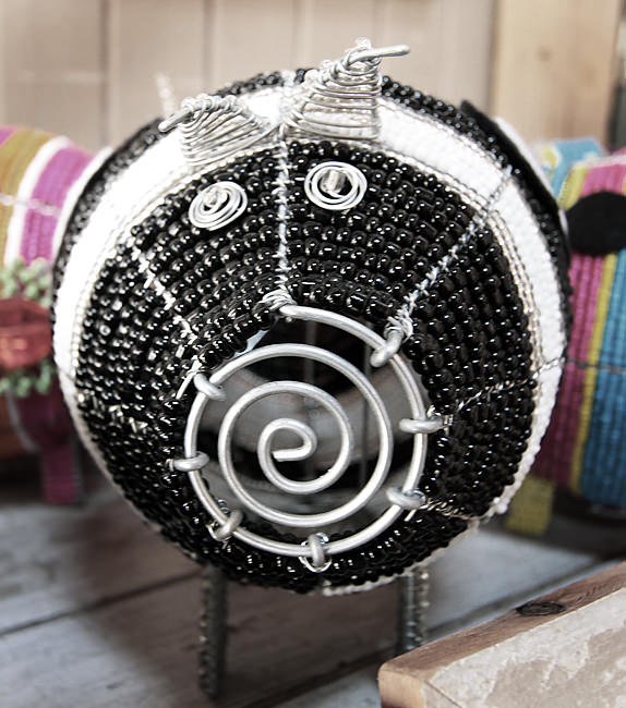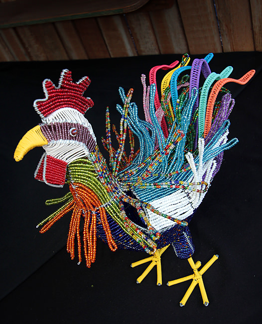 Beadmaster Douglas Dawah shows me his prized creation: a one-of-a-kind beaded rooster. This is Doug’s own unique design. No other bead artist has ever created anything quite like it.