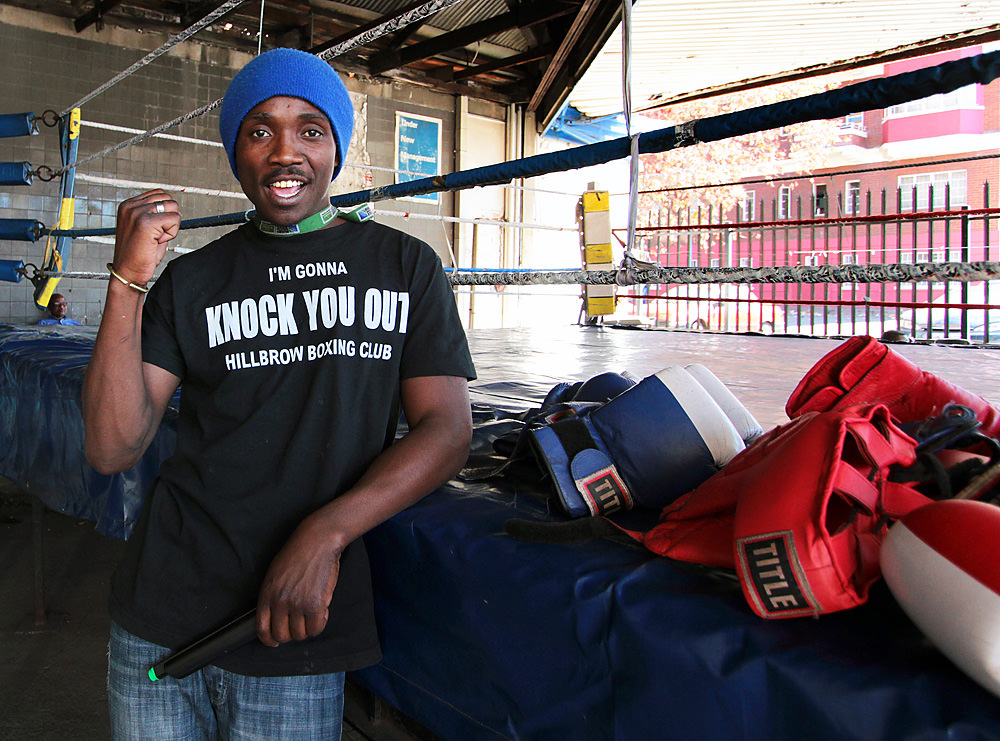 Sandile, the most photogenic boxer at the Hillbrow Boxing Club, hangs around the ring before the tournament. Sandile didn’t fight yesterday.