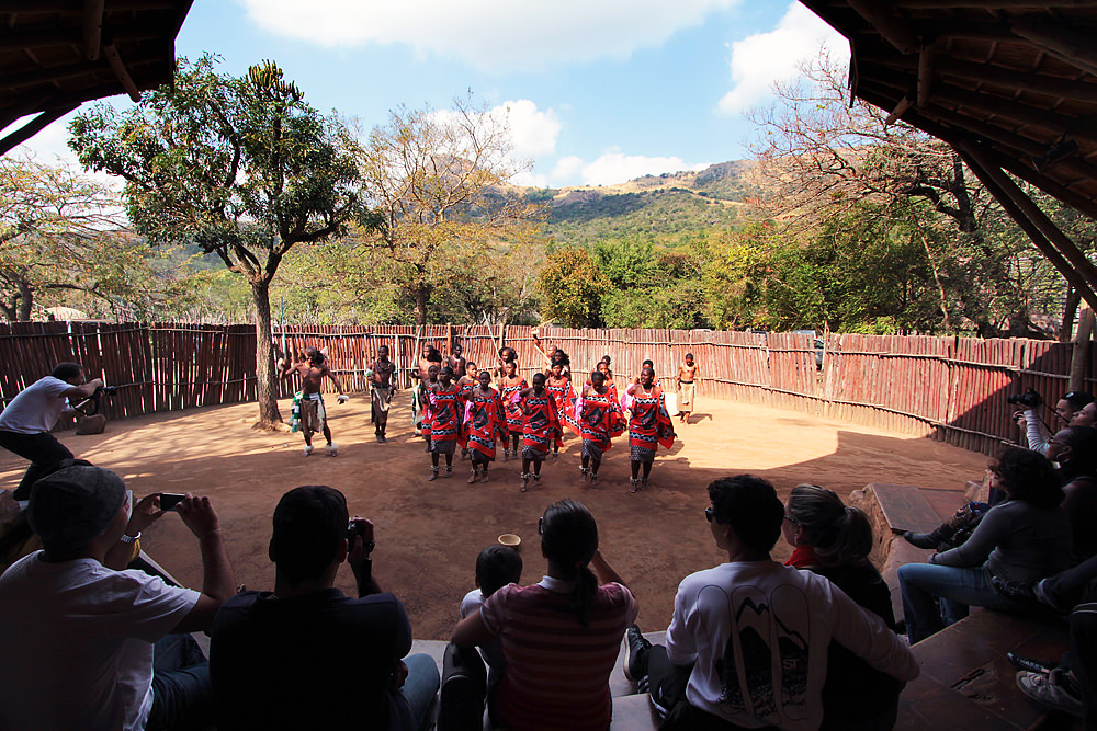 Anyway, I have a lot of memories from Mantenga and wasn’t in the mood to relive them on Sunday. I wasn’t particularly excited to tour the “cultural village” and watch a traditional Swazi dance, either. I’ve visited many real Swazi villages and watched real Swazi dances. The Mantenga set-up seemed contrived, and the tour expensive (R100, or $12). But my friends had never seen Swazi dancing and really wanted to do the tour. I didn’t want to let them down, so I coughed up the 100 bucks and settled in to enjoy the performance as best I could.