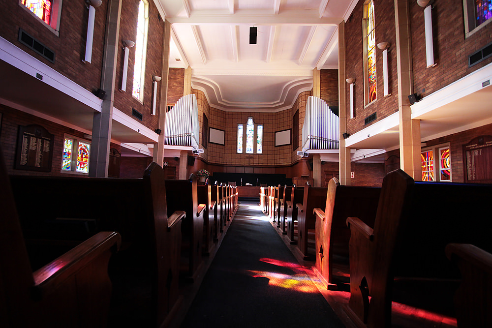 Each of the stained glass windows in the chapel has a plaque below it, with words like “patience”, “love”, and other character traits encouraged by the Methodist Church. The prettiest window was the one labeled “self-control”.
