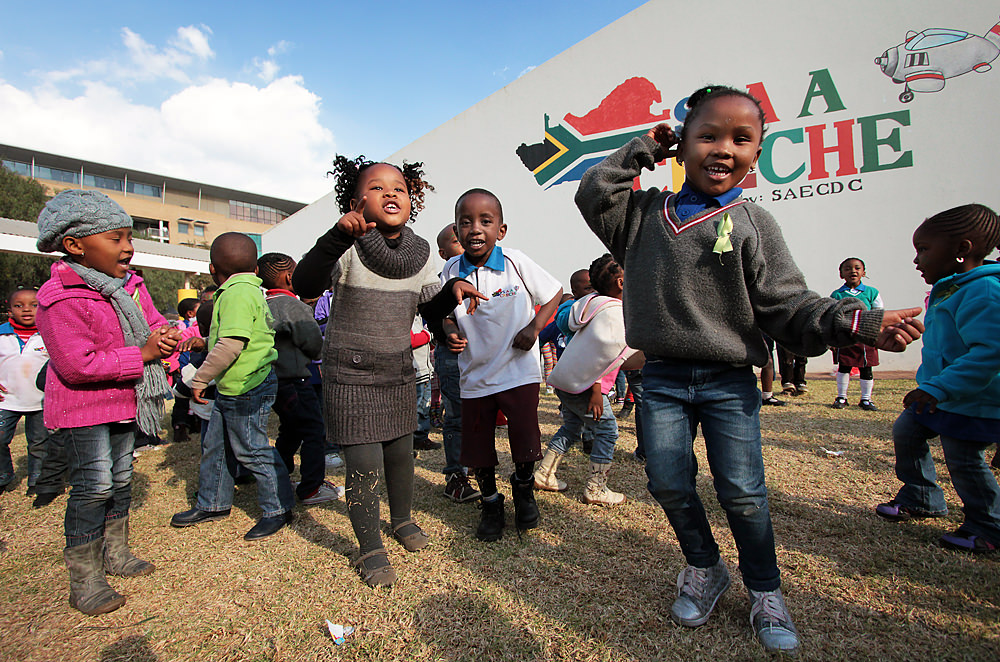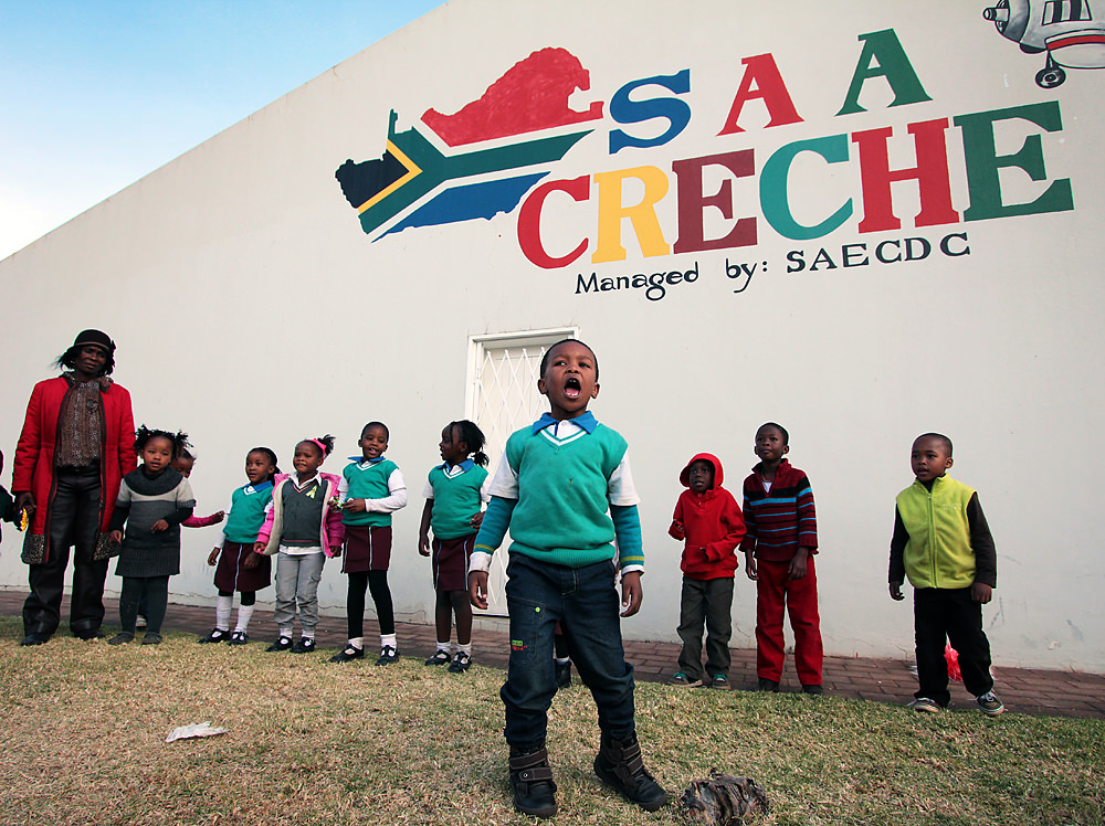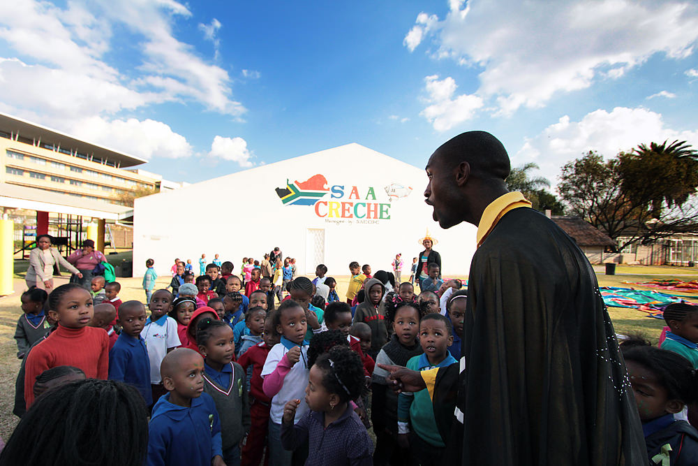 You may remember Lebo, the camp counselor from Soweto who I wrote about a couple of months back. Ever since we met, Lebo has been asking me to come visit his after-school program, Lebo’s Indigenous Games Project (LIGP), where he and his staff work to provide kids with a good start in life. For one reason or another I still haven’t made it to visit LIGP in Soweto, but Lebo is a persistent young man. He kept calling and calling, and finally convinced me to attend a “Children’s Day” event that he helped organize at the South African Airlines (SAA) Crèche near O.R. Tambo Airport. (“Crèche” is the South African term for a daycare center or nursery school.)