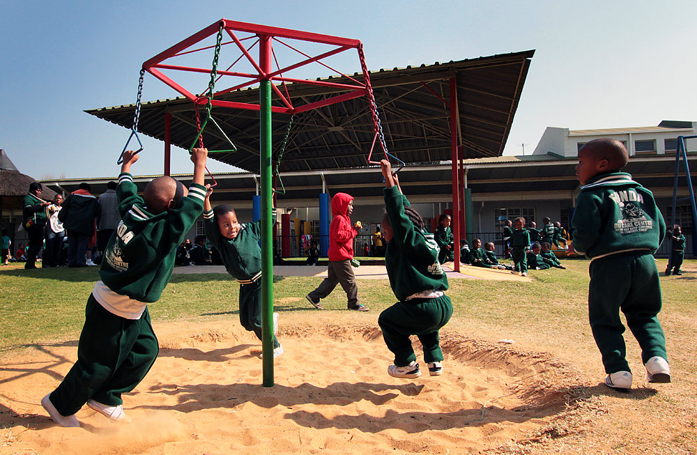Most African playgrounds are made from recycled materials. Rubber tires and pipes become swing sets. Old metal drums become tunnels.