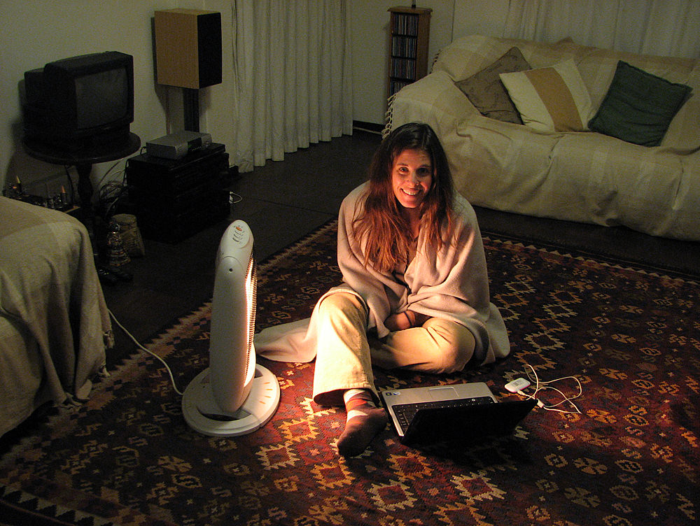 Now imagine that same scenario, except you aren’t able to shut the windows and there is no thermostat to turn on. All you can do is plug in the “panel heater” – a one-meter-square metal panel affixed to the wall, which emits such a scant amount of warmth that it’s almost laughable. You can turn on your electric space heater or your portable gas heater, but those are temporary fixes. You’ll have to turn them off again before you go to sleep. So you shiver, curse, put on all the clothes you own, and go to bed.