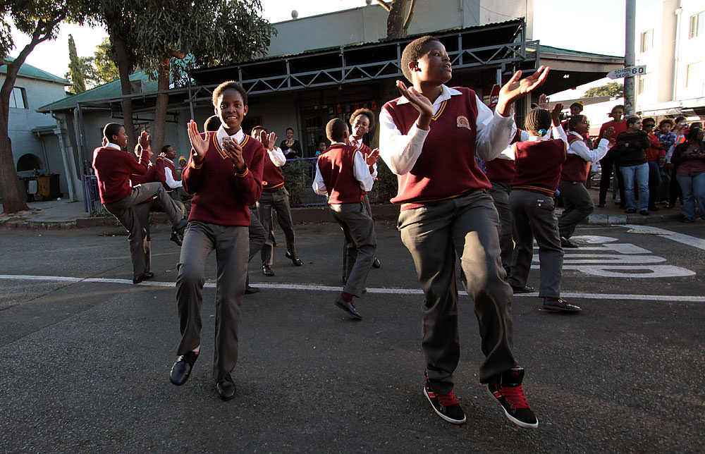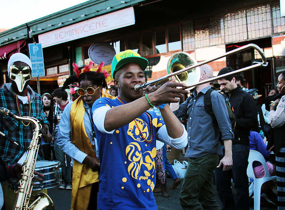 Local band The Brother Moves On marches down 7th Street during the Fête de la Musique.