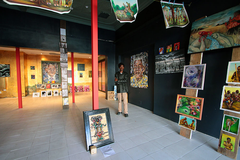One of the empty retail spaces on 7th St. was converted into a gallery for local Melville artists on Saturday. The guy in the middle is Samuel, one of my favorite Melville “bead guys”. He painted the picture to his left.