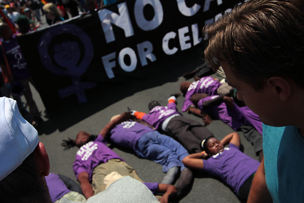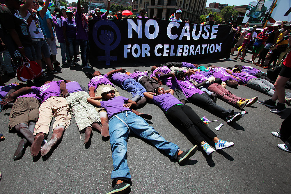 These activists staged a “disturbance” in the middle of the parade to protest the commercialization of Joburg Pride, and also to remind everyone that South Africa still has a long way to go in protecting the rights of the LGBT community. They have a good point: Gay, lesbian, and transgender people are frequently raped, tortured and killed in South Africa for no other reason than because they’re gay.