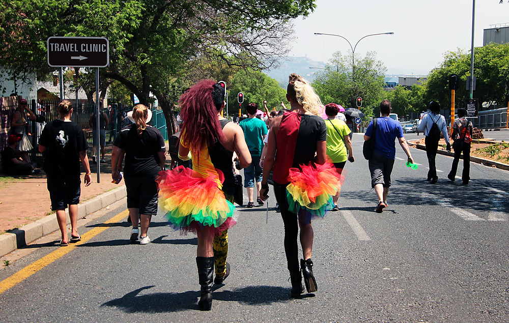 Johannesburg’s annual gay pride parade, Joburg Pride, happened today. I wrote a long post about Joburg Pride last year, so I won’t torture you with another one. I marched more as a participant than a blogger this year, and besides, it was just too damn hot to take lots of photos.