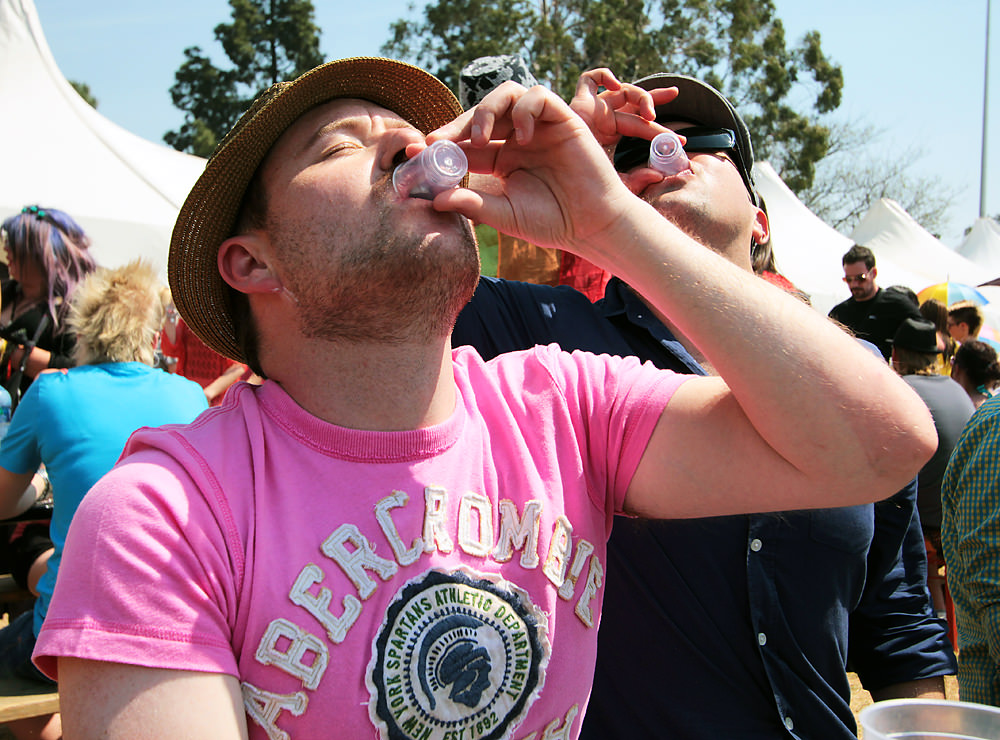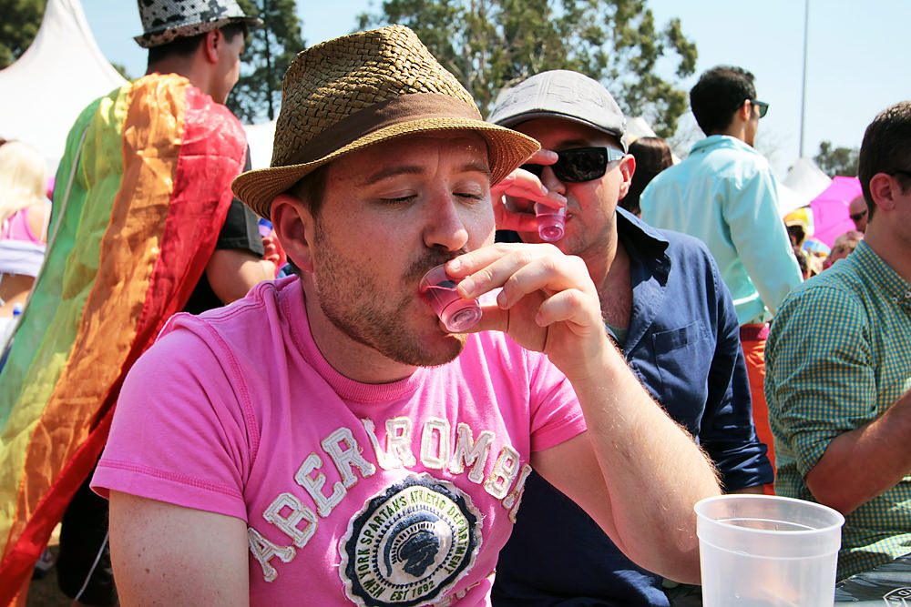 My friend Tom, creator of the stellar Jozi blog Urban Joburg, prepares to drink a free shot of some pink alcoholic beverage. I love how it perfectly matches his shirt.
