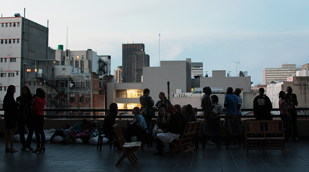 As we gazed out at the city, Anita observed that the CBD at street level is strikingly different from the CBD a few floors up. Standing on the corner of Jeppe and Joubert Streets on our way to Ansteys, we experienced dirt, honking horns, hordes of people, and a mildly unpleasant pee smell. We didn’t think to look up because we had to keep our wits about us. But once we got to the Ansteys 4th floor, the view was actually quite clean and orderly. Almost tranquil.