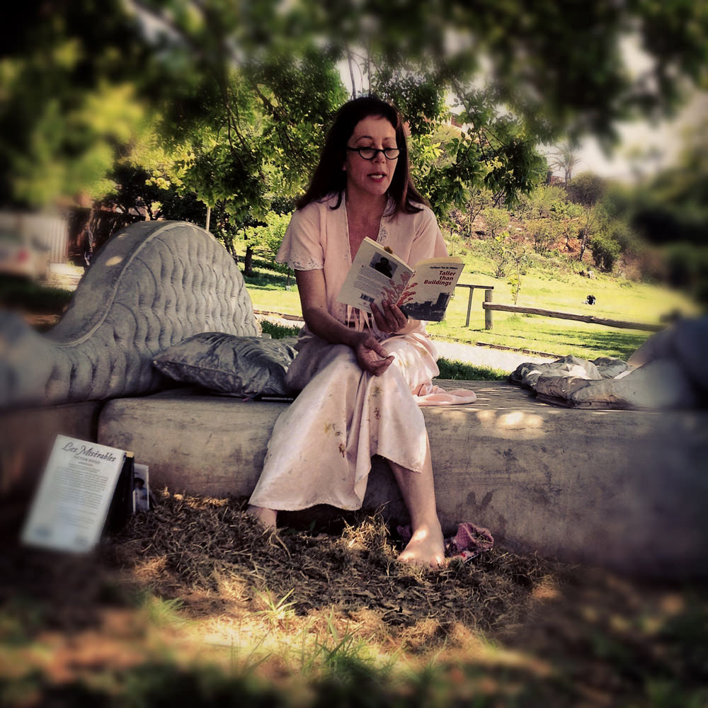 When we got to the bed on Saturday afternoon, Lesley slumbered fitfully upon it in a pink silk nightgown. She tossed and turned, then woke up and angrily checked messages on her phone. She sat up in bed and read poetry aloud. We listened with rapt attention. Then Lesley did a brief Q&A.