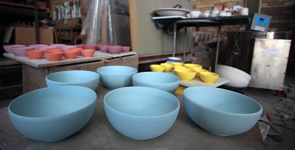 Ceramic bowls in progress in Peter Mthombeni’s cavernous Troyeville workshop. Peter sells his work at the Bryanston Organic Market – I met him there a few months ago.