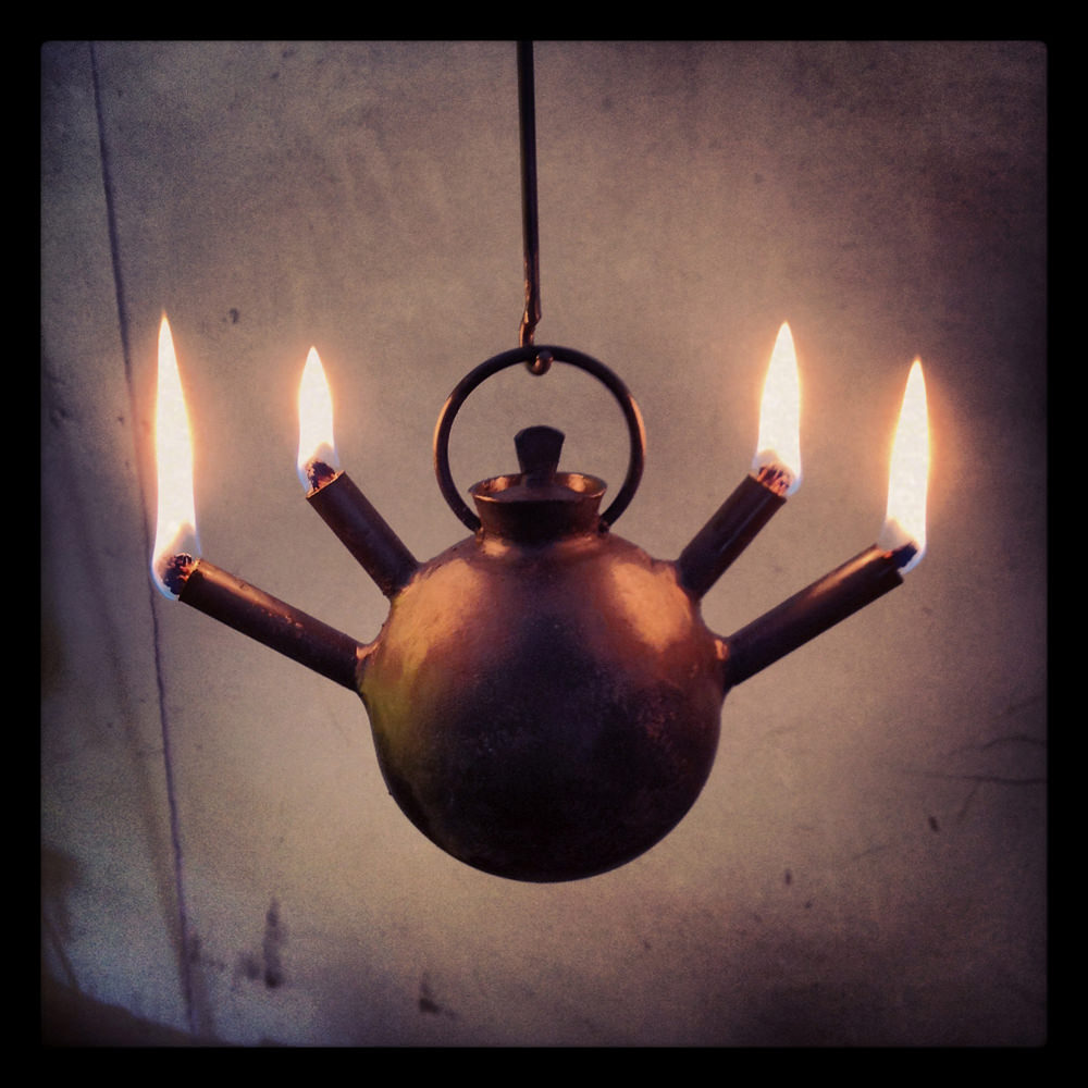 Stunning (but slightly terrifying) lamp by lighting designer and metalworker Chevy Borchowsky.