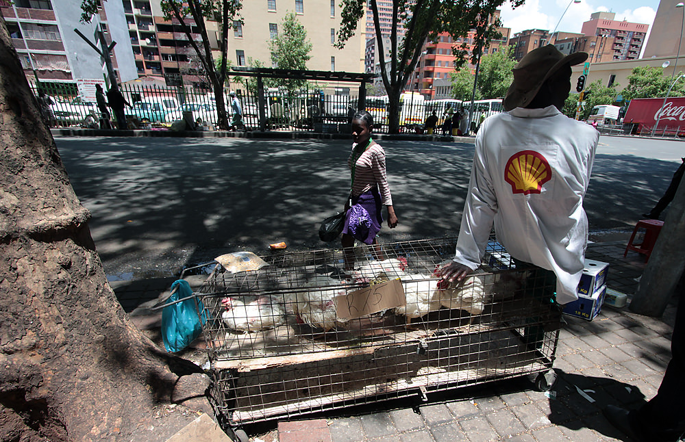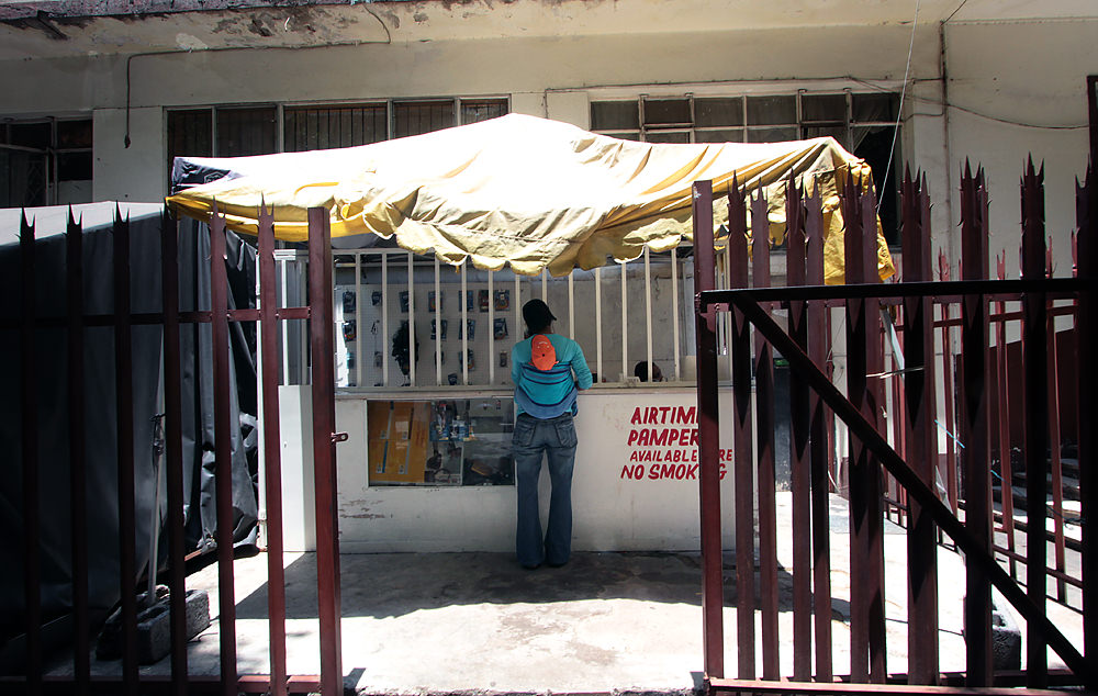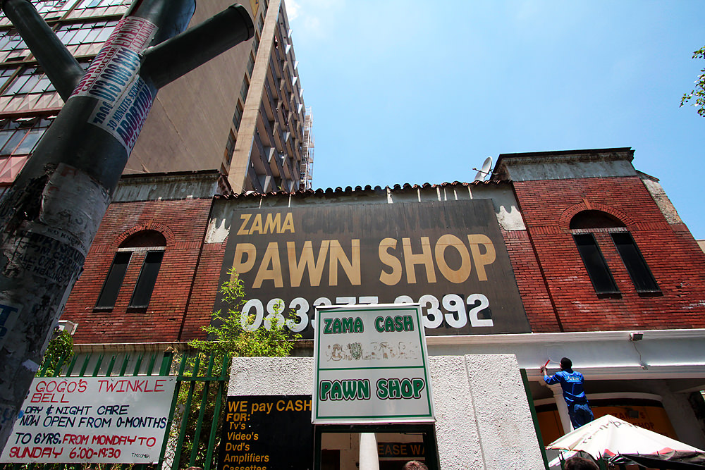 You can buy pretty much anything in Hillbrow on a Saturday afternoon. This mom-and-baby pair patronizes a street-side shop selling an interesting combo of airtime and pampers.