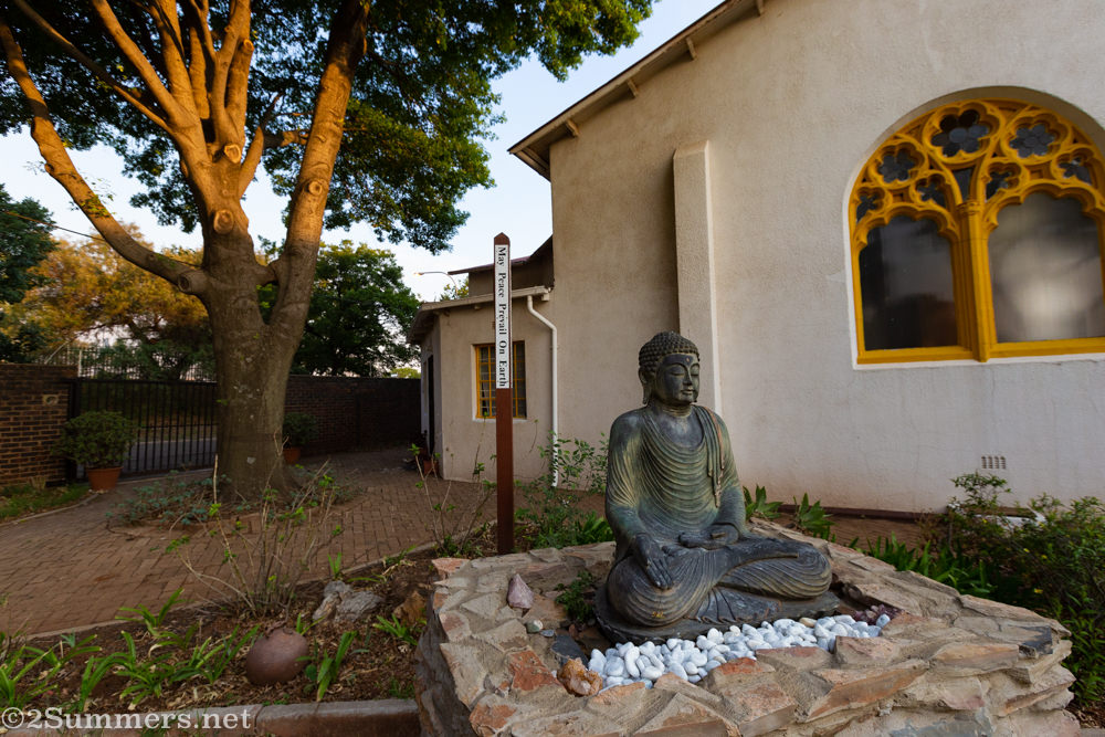 The Lam Rim Buddhist Centre is in Fietas (also known as Vrededorp) – a historically non-white suburb in Joburg that experienced forced removals and virtual destruction during apartheid. The building used to be an Afrikaans Dutch Reformed church.