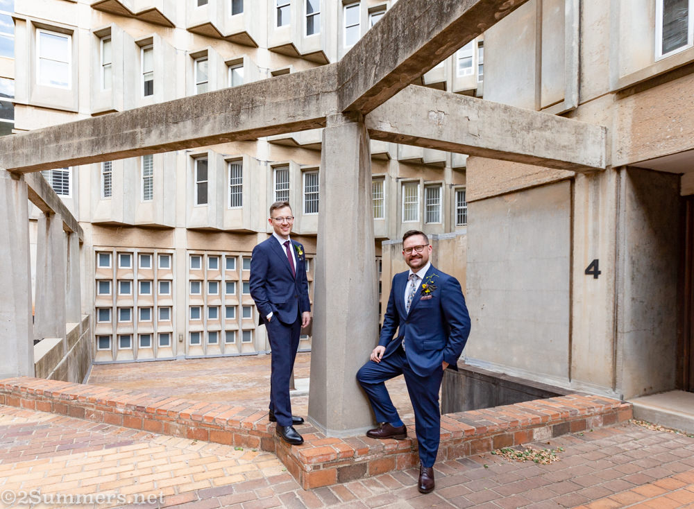 Thomas and Guy got married at Wits (the University of the Witwatersand, for those of you not from around here), in a hall with a giant organ in the balcony. I’d never realized what a beautiful campus Wits has; Thomas and Guy and I had so much fun taking photos there, playing with the interesting architecture and public art and landscaping.