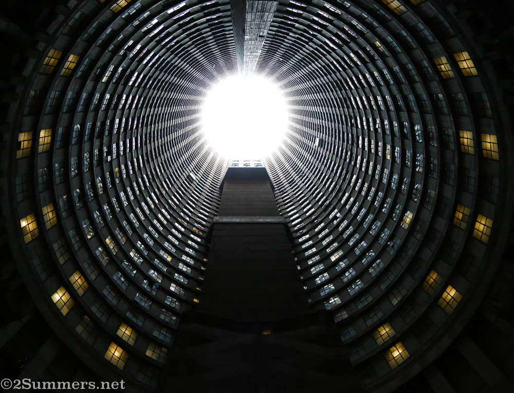 Looking up at Ponte from inside its hollow core, accessible from the building’s parking garage. I’ve looked at this view 100 times and it still makes my head spin.