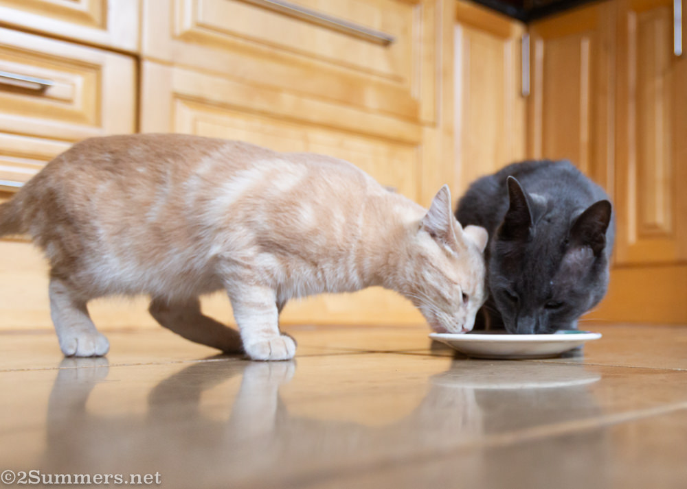I recently received a beautiful ceramic food bowl from Cape Town. The bowl has gray spots and feline ears and Heather says it was made especially for me by one of my fans.