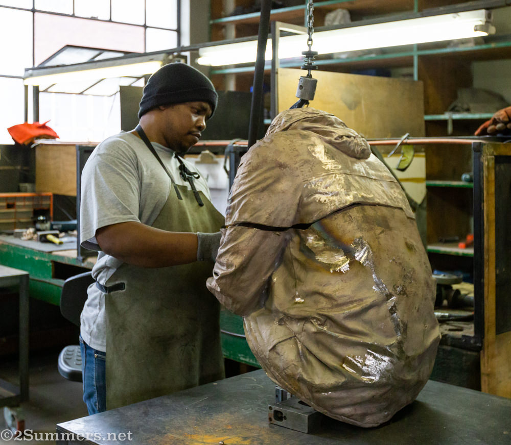 See the Workhorse website for a much better explanation of this process. Also, studio manager Rina Noto does a fantastic job of leading guests through the foundry and explaining the bronze casting process in just the right amount of detail. I highly recommend touring the foundry with Rina, but tours are strictly by appointment and only during the week.