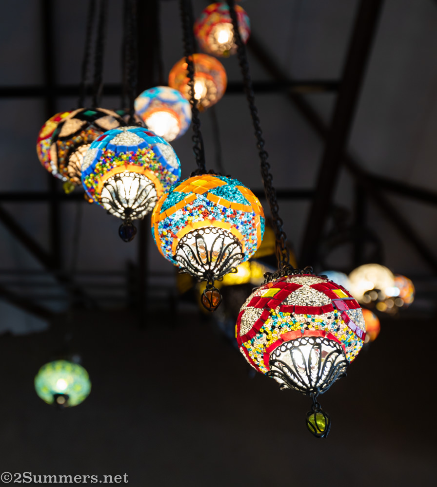 I don’t know what the old Ba-Pita looked like. But the new one is charming and colorful, with pretty glass lamps hanging from the ceiling and a mosaic clay oven in the corner.