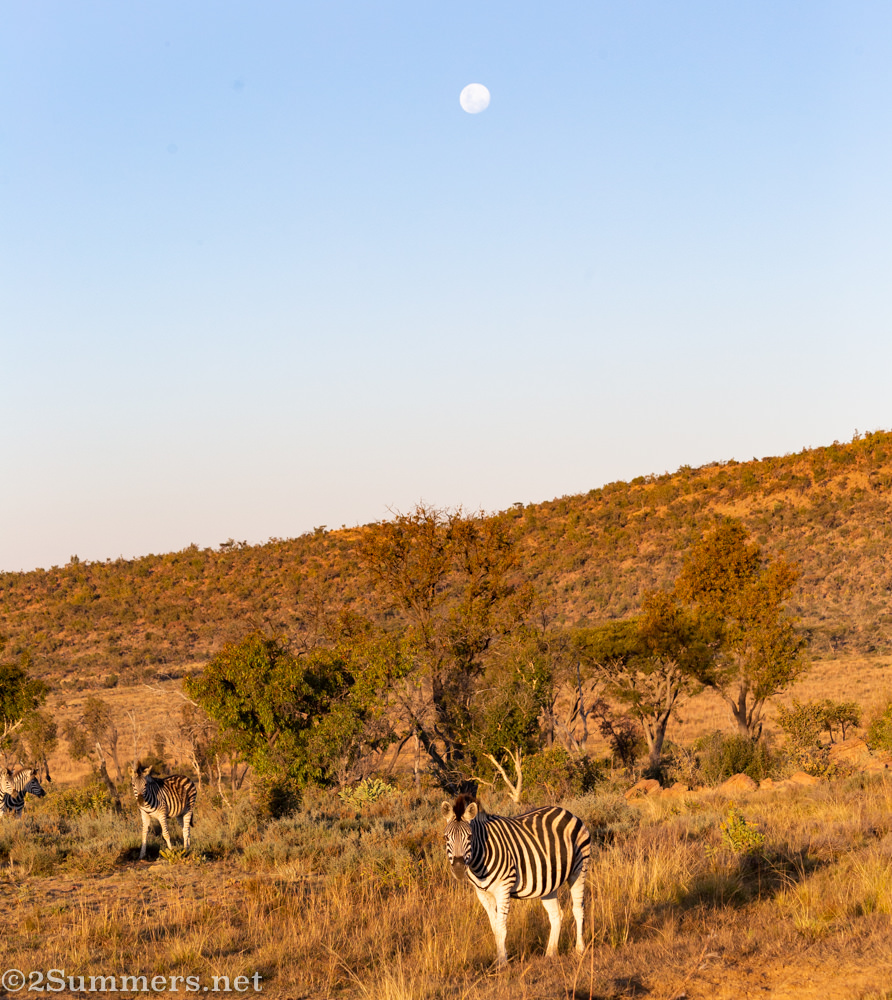 There is a huge rhino poaching problem in South Africa. But Welgevonden has a very large population of rhinos and due to a sophisticated anti-poaching program not single rhino has been killed there since 2015.Rhino baby. I die.Zebras under an impending full moon.Me looking happy and cold in the bush. (Photo: Kevin Millner)