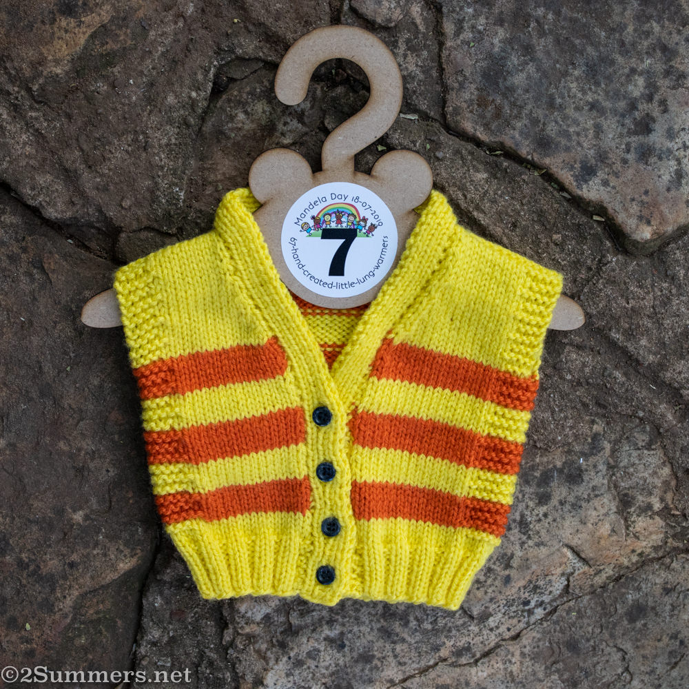 A couple of months ago a woman named Andrea asked if I could photograph a project she was working on. Andrea is a knitter and she was making 67 tiny sweaters – Andrea calls them Little Lung Warmers – to donate to charity in honor of Mandela Day. The number 67 is significant for Mandela Day because Mandela served South Africa for 67 years. (Read more here.)