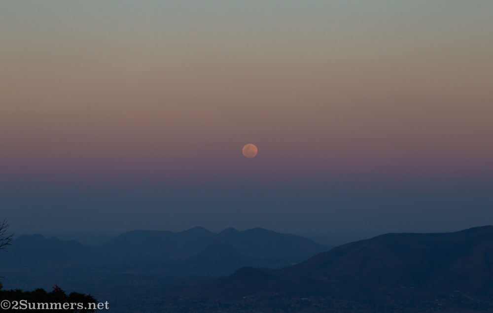 The infamous dead eucalyptus tree in front of Kings Walden, accompanied by a rising full moon.