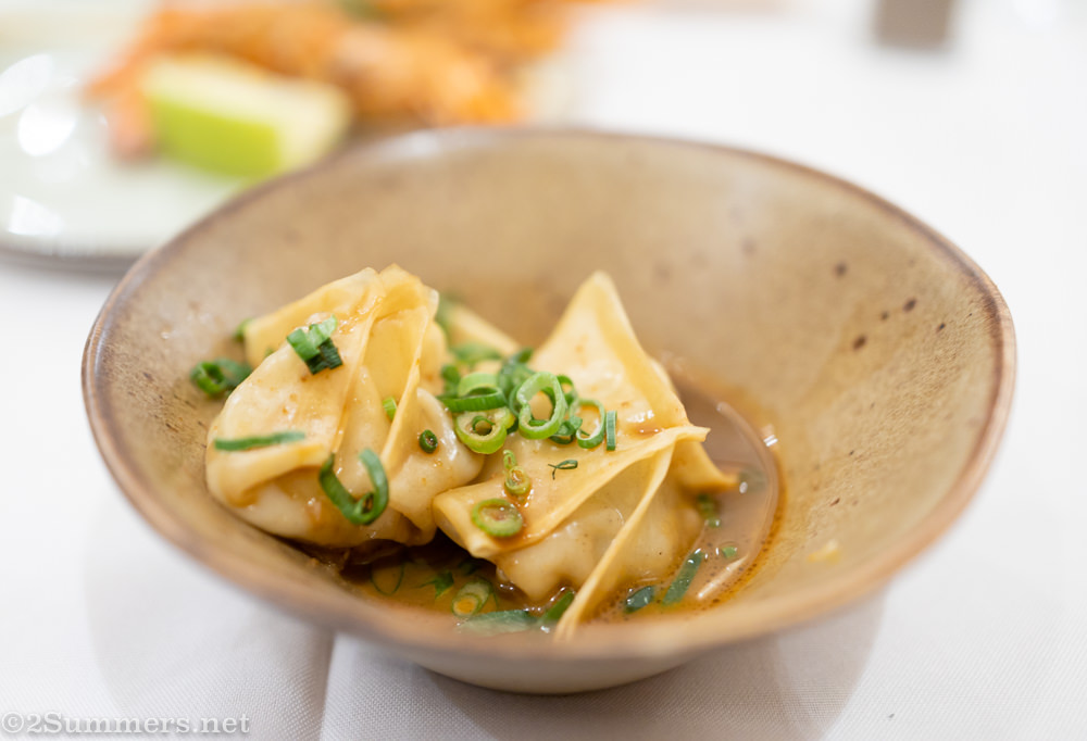 Inside the Prawnery.Asian king prawn dumplings, which were delicious but I hate it when tapas are served in threes.