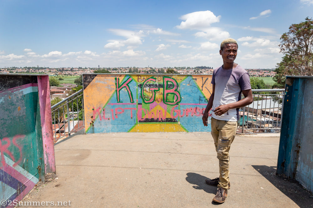 Thulani leads us into Kliptown’s residential section. KGB stands for Kliptown Gumbooters in this part of the world. Google gumboot dance to understand why.