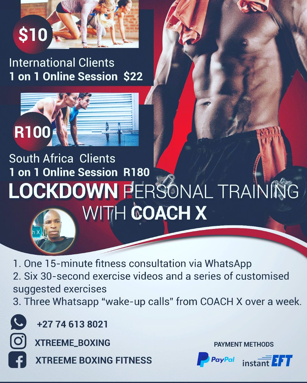 This is not really a cause, more of a mutually beneficial exchange. I am pleased to announce Xolani – Coach X – has launched his Lockdown Personal Training business.