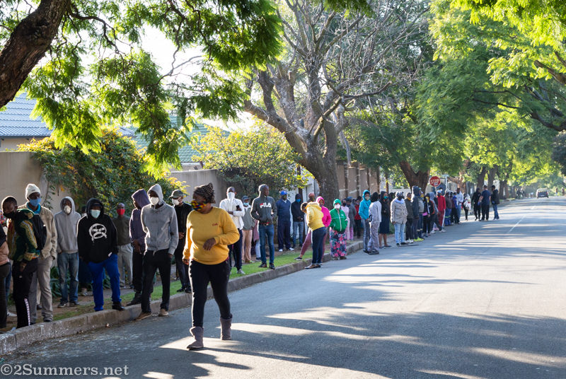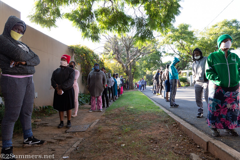 Lockdown photo 56: People wait in line for food parcels outside 91 3rd Avenue in Melville.