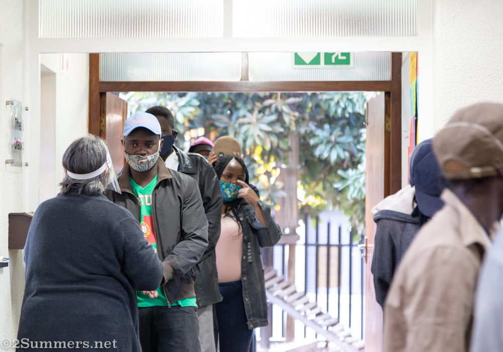 This is actually quite terrifying because I can see how the food parcel recipients are depending on this program now. Even behind masks, it’s impossible to miss the joy and relief on people’s faces as they walk out of the church with their food.
