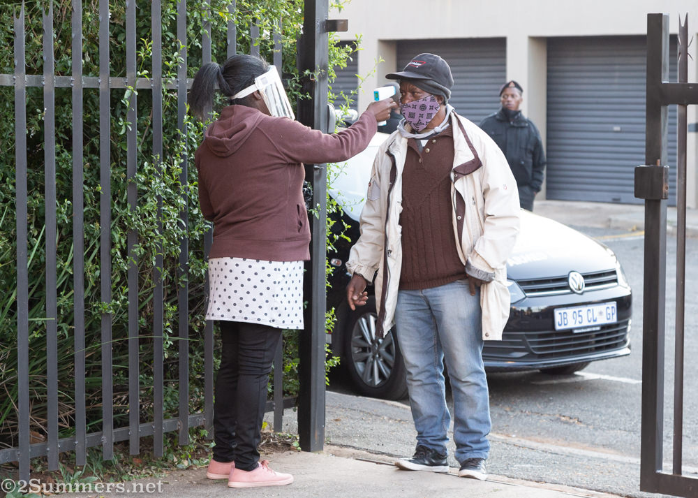 Everyone gets their temperature taken before they enter the church.A volunteer takes a photo of each person with their claim ticket before they leave with the food parcel, just to keep track of the numbers.Photojournalist Bonile Bam, who also lives in Melville, has been documenting the food distribution for the past two weeks. This week he was shooting analog portraits of many of the parcel recipients. I can’t wait to see what comes of his project.