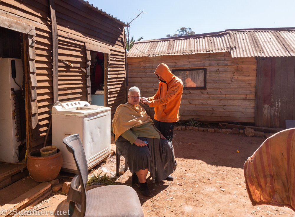 Andre has been living at Villa Gloria for seven or eight years.Maria moved in about two months ago.Maria’s canary.Danie and his lime-green bakkie.After a while I got overwhelmed and stopped writing down names.A family haircut.These kids were playing a game with bottles of nail polish.Cutie.