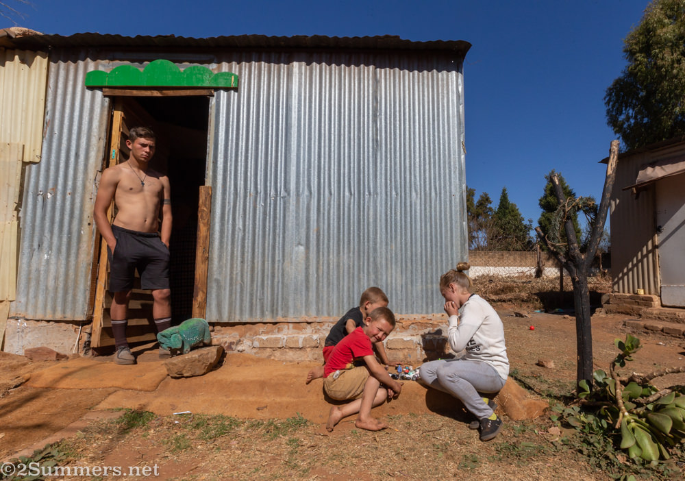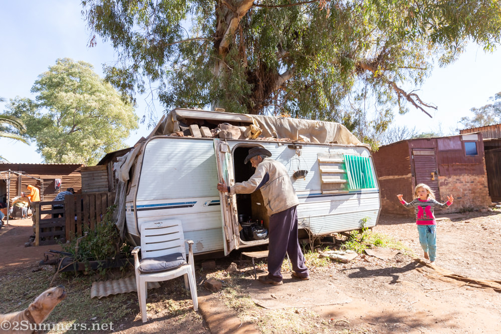 We dropped off Michelle’s cooking pot and food donations and then took a walk around the property with Porra and Vicky du Preez, who run the non-profit organization. Porra and Vicky introduced us to several of the residents.