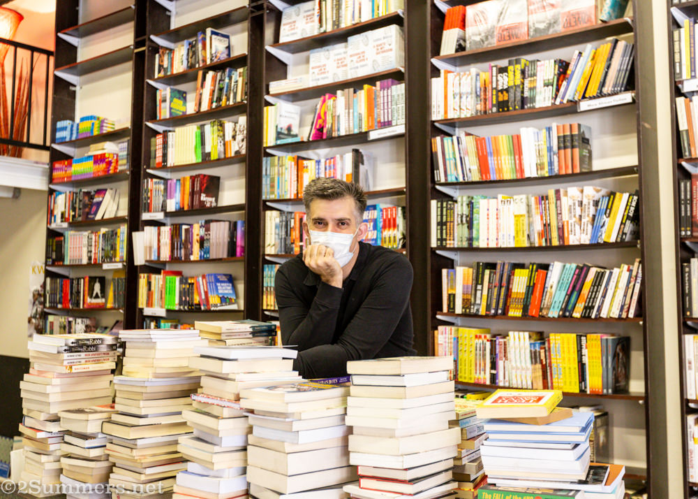 Inside the new Bridge Books.My friend Griffin, owner of Bridge Books.