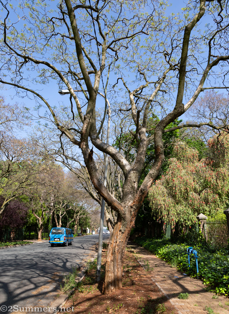 The jacarandas along Emmarentia Avenue in Greenside and Parkview are still barren. And I’m seeing quite a lot of jacarandas all over the place that are sprouting leaves but no flowers.