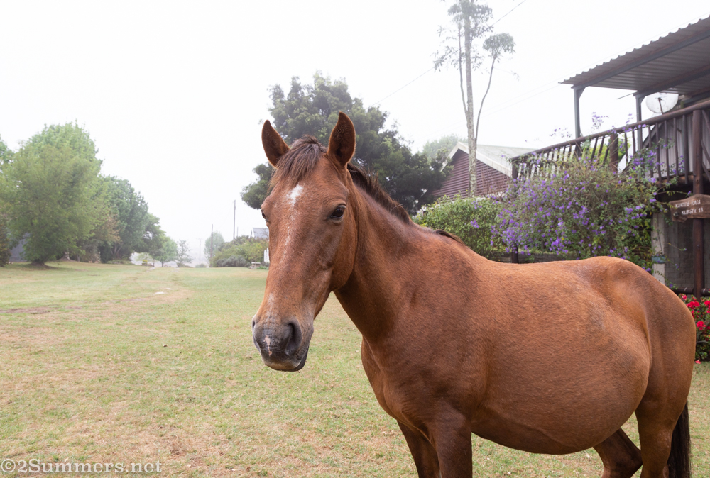 A horse greets me during my first misty visit to Kaapsehoop in September 2019. Kaapsehoop is known for its prolific mist and roving herd of wild horses.