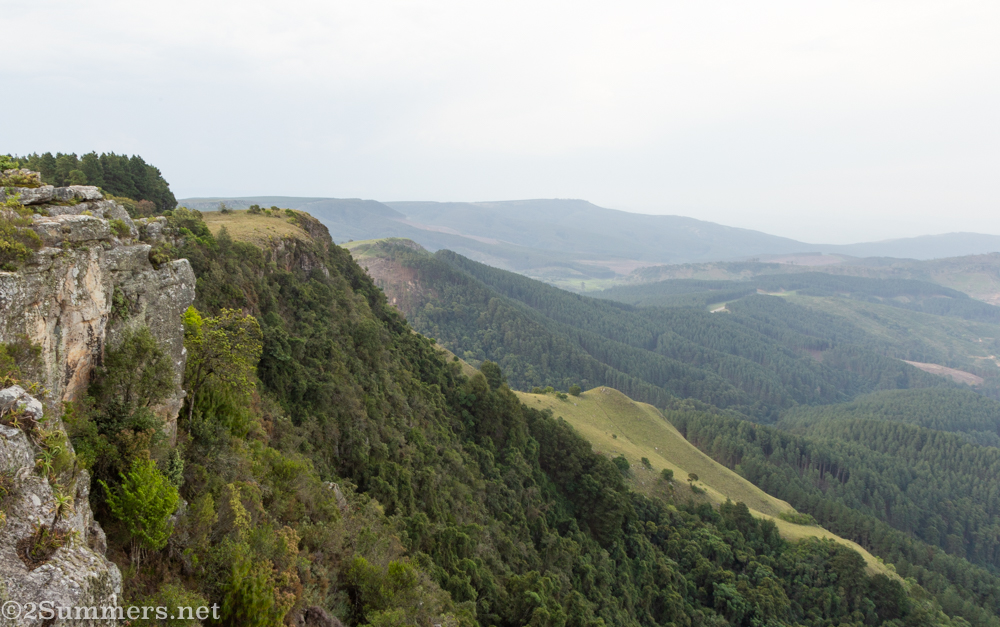 The view from the top of the escarpment. You can see the Sappi-planted pine trees stretching endlessly into the distance.
