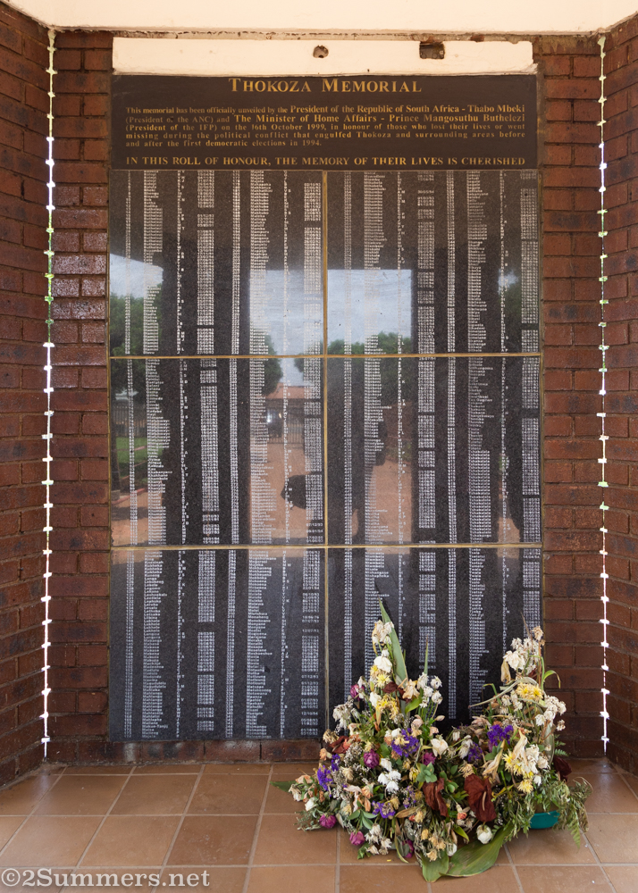 Last weekend I attended my second #SpazaShopTour of Katlehong and Thokoza (see my post about the first tour), and visited the Thokoza Memorial for the first time. The Thokoza Memorial, opened in 1999, honors the people who died in this area during the violent political conflict in the years leading up to South Africa’s first democratic elections in 1994.