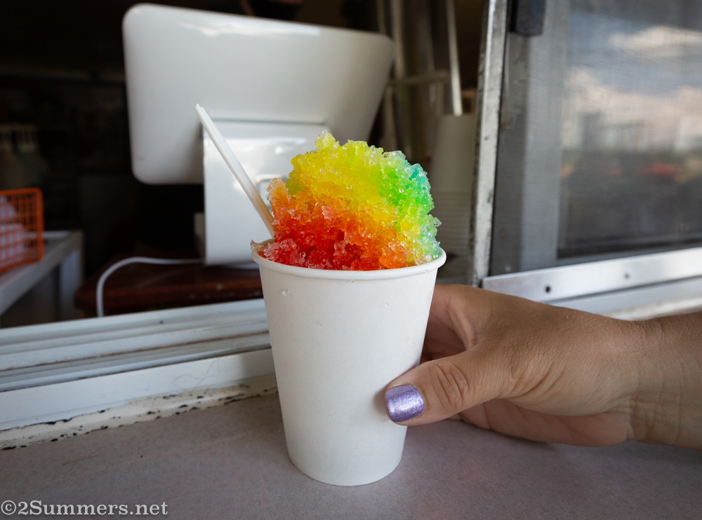 My sister and I took Jack to the Snowball Stand in Woodstock, Maryland, which we frequented during the summer as kids more than 30 years ago. It’s still exactly the same. I was overjoyed.Jack’s rainbow snowball.I had blood orange with marshmellow topping. (Photo: Susanna Mason)Rainbow snowball tongue.