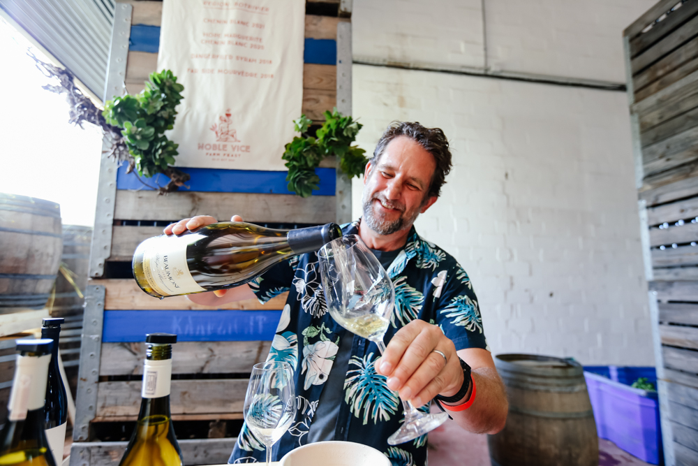David and Nadia are a famous winemaking couple based in the Swartland. I didn’t get the chance to speak to them (their stall was extremely busy all day), but I tasted their Chenin Blanc and it was one of my favorites from the weekend.Lukas van Loggerenberg talks to us about his Break a Leg Blanc de Noir Rosé, which was already one of my favorite wines before I arrived at Noble Vice.Sebastian Beaumont of Beaumont Wines was kind enough give me a taste of his 2012 Hope Marguerite, an unusually old vintage for a white wine. It was delicious.I love really dry Cap Classique, and the Dainty Bess Pinot Noir was one of my favorite Cap Classique at Noble Vice. Cap Classique is the term for traditionally made sparkling wine in South Africa. (Although it’s made the same way champagne is made, MCC can’t be called champagne because it’s not from the Champagne region of France.) I also enjoyed chatting with Jane Ferreira-Eedes, who makes Dainty Bess as a side gig; like many boutique winemakers, she has another 9-5 job in the industry.Hanneke Krüger pours us a taste of pH Palomino, a boutique white wine that she makes with her friend Pauline. Hanneke and Pauline also make a "Pet Nat" sparkling wine, which I had never heard of before Noble Vice. Pet Nat stands for Pétillant Naturel and is basically a more rustic, natural version of sparkling wine.Kayleigh Hattingh of Rebel Rebel Wines. Like Hanneke, who makes her own wine on the side while working full time as a winemaker at Badenhorst Family Wines, Kayleigh makes Rebel Rebel while also working as a winemaker at Kaapzicht (the farm where Noble Vice was held). I loved the Rebel Rebel white, which is made with an unusual wine grape called Colombar. I also loved meeting all these women kicking ass in a male-dominated industry.