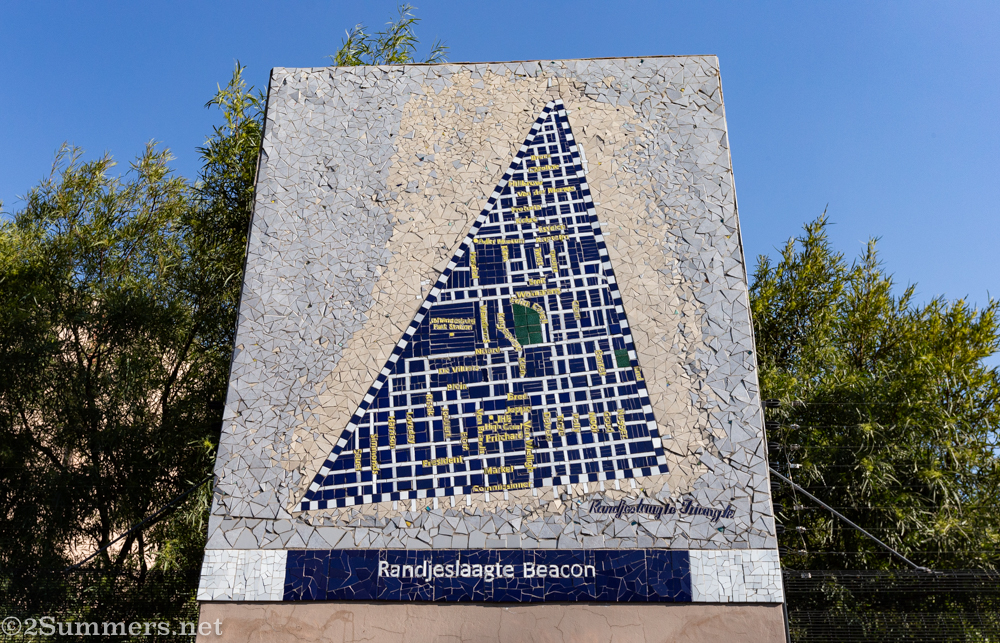 Mosaic at the Randjeslaagte Beacon, which portrays a map of the original Joburg triangle.