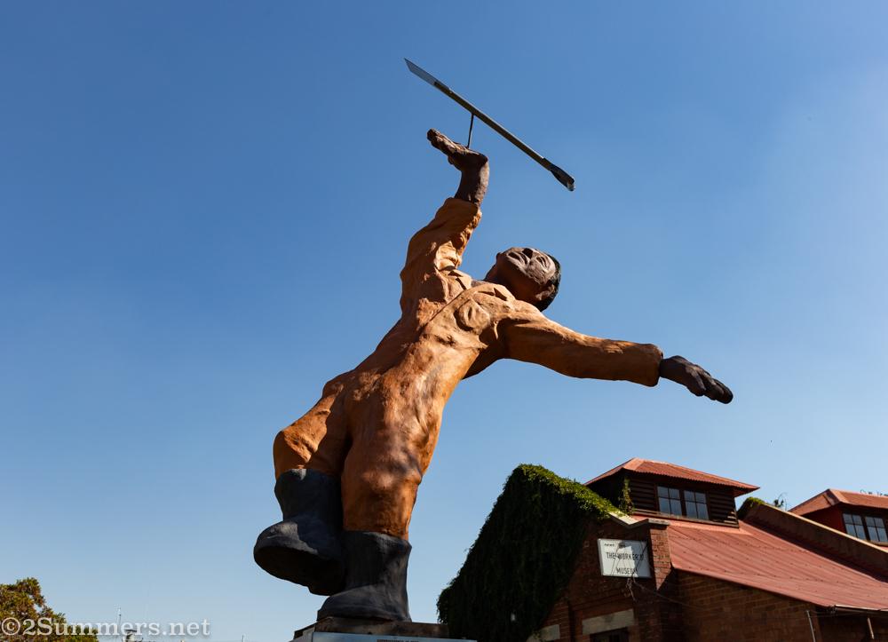 The Ranjieslaagte Beacon marks the top corner of the original city of Joburg, as it was proclaimed on an unused triangle of land between three farms, in 1886. The beacon became a national monument in 1965, and Drew was commissioned to create a mosaic for the site ahead of the 2010 World Cup. Like so many of the other mosaics we visited on the tour, I had never been to the Ranjeslaagte Beacon before (even though it sits right on the edge of Hillbrow, where I go all the time).