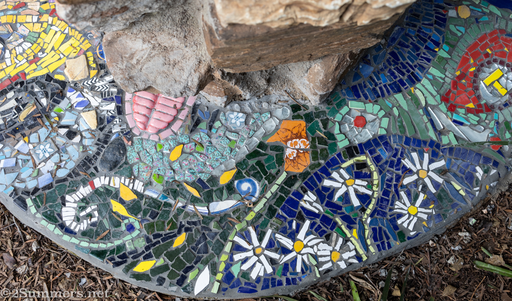 This mosaic is difficult to convey in photographs; like all of the Spaza Art mosaics, it takes on a special life when you look at it in person. I hope everyone will go see it as soon as the park opens, hopefully very soon.