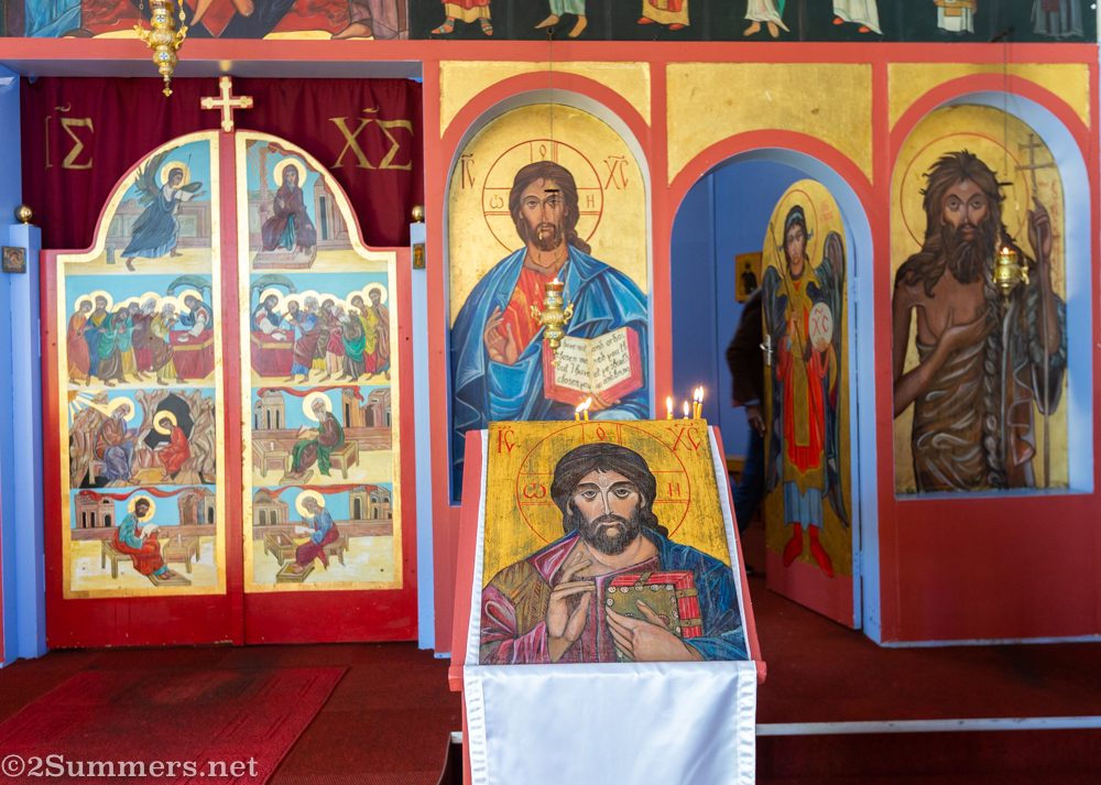 The pulpit at St. Nicholas. All of the beautiful icons in the church were painted by artist Cathy MacDonald. (Cathy’s daughter, Dionne, is also an artist and involved with the Spaza Art Gallery, which I blogged about recently).