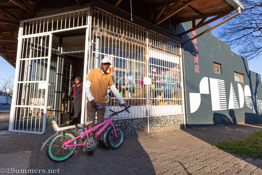 Percy Zimuto, who introduced us to spinning, with his hand-crafted bike.Jayden (left) and Khutso, two more of the Croozers.