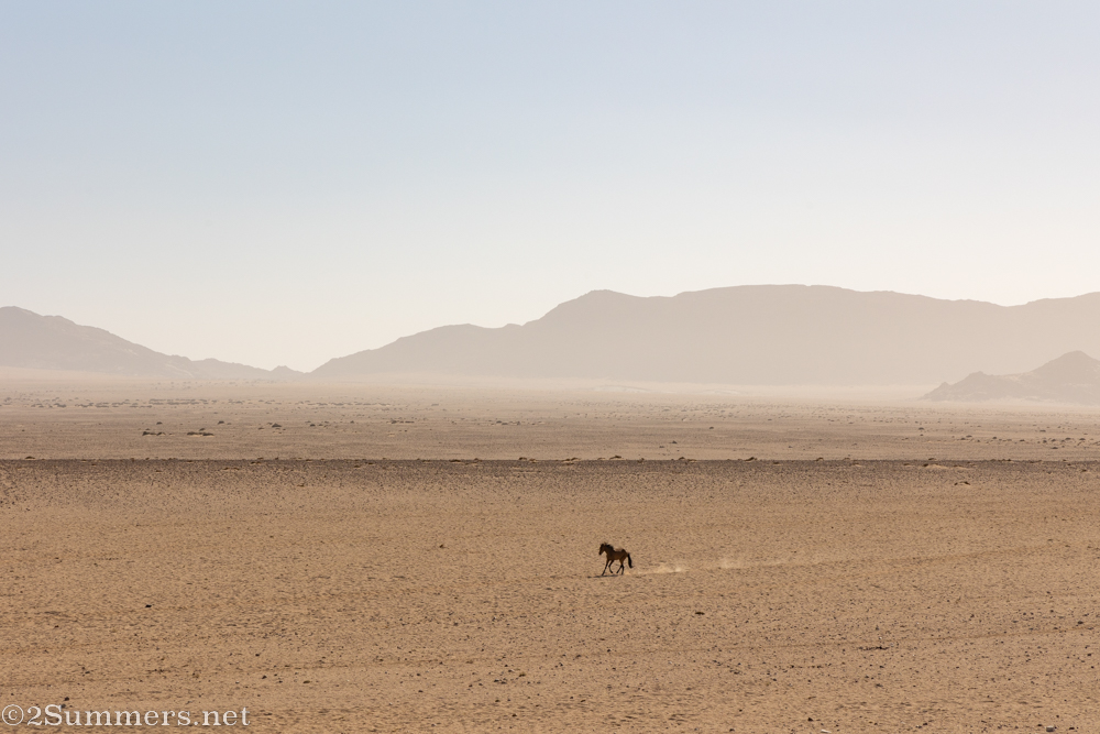 Thorsten and I in the inhospitable land of his birth. (Photo: Andrew Engelbrecht)One of a herd of wild horses, probably descended from horses brought to Namibia by the German army during WWI. Inexplicably, this herd has survived and thrived in the desert for more than 100 years.