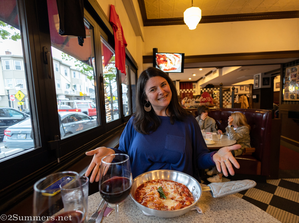 Rhode Island is famous for Italian food and lobster, and Susanna and I sampled both. Our first dinner was in Providence’s famous Federal Hill neighborhood, known for its Italian restaurants (and mafiosos). We chose to eat at Angelo’s, which is nearly 100 years old.